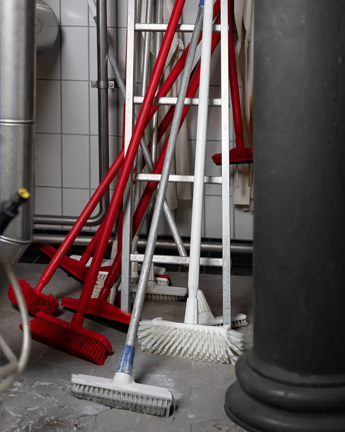 Ein Werkzeug-Edelstahlschatten ist ein exakt gefertigter Umriss eines Reinigungsgeräts – zum Beispiel einer Bürste oder eines Abziehers – aus 2 mm starkem, rostfreiem Edelstahl. Mit angeschweißten Halternasen kann er direkt an Maschinen oder Wänden befestigt werden. So ist das benötigte Gerät immer griffbereit – genau dort, wo es gebraucht wird.